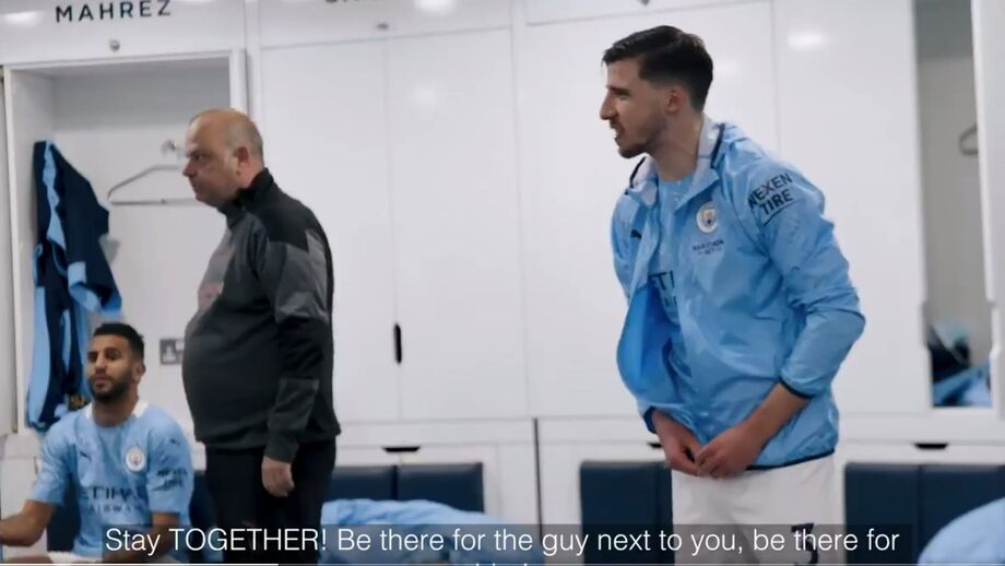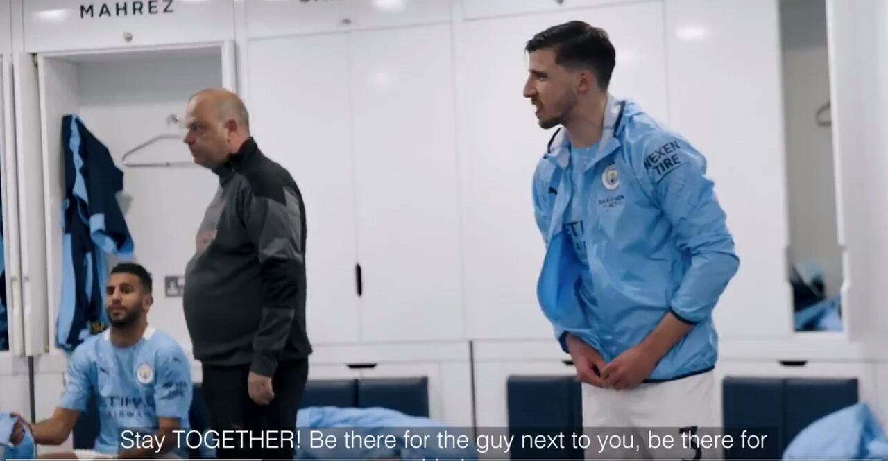 O excerto mostra momentos que incluem os portugueses Rúben Dias, Bernardo Silva e João Cancelo. No caso do defesa-central contratado ao Benfica, assiste-se a parte de uma mensagem no balneário aos colegas de equipa.