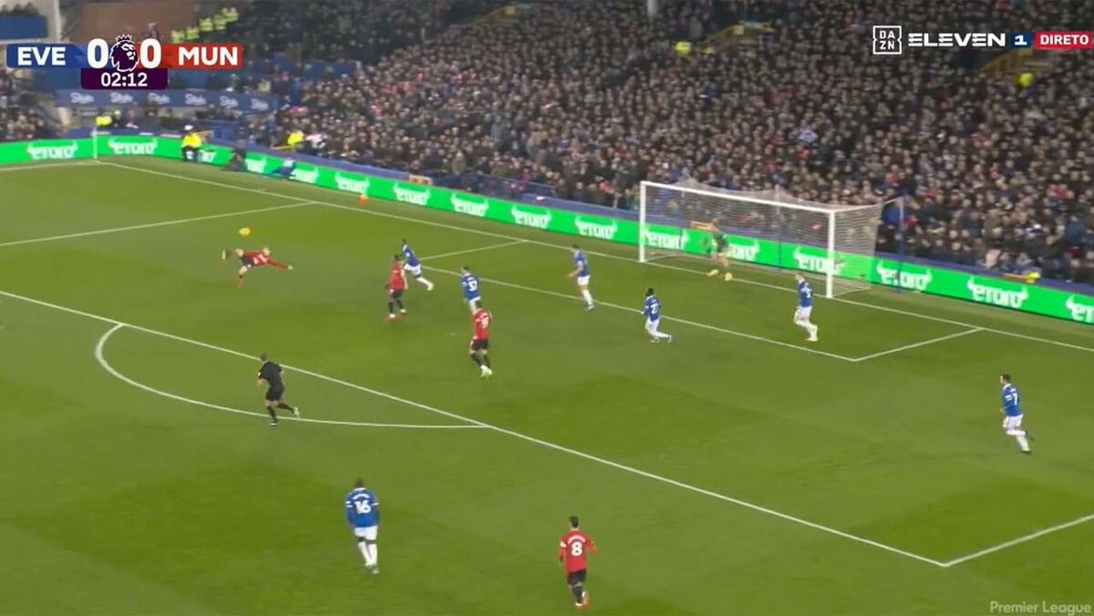 Foi com um sensacional pontapé de bicicleta, candidato ao prémio Puskás, que Alejandro Garnacho inaugurou este domingo o marcador no Everton-Manchester United. Aos 3 minutos, o argentino correspondeu da melhor maneira a um cruzamento de Diogo Dalot com um gesto para ver e rever e ainda festejou... à Cristiano Ronaldo.