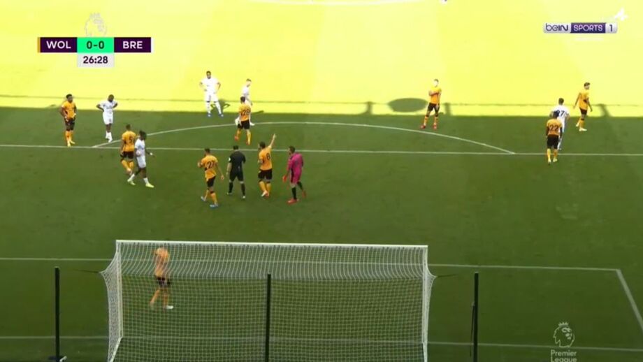 Guardião do Wolverhampton procurou atrapalhar o pontapé de Ivan Toney de forma caricata