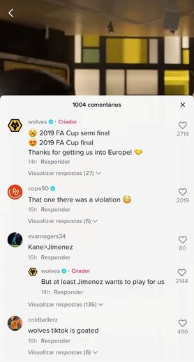 Página oficial dos lobos na rede social 'TikTok' não perdoou comentário de um fã de... Harry Kane