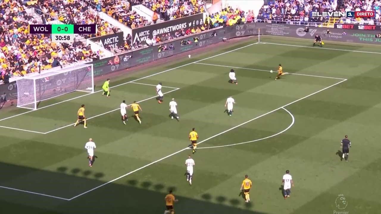 Matheus Nunes abriu este sábado (e de que maneira!) o marcador no Wolverhampton-Chelsea, com este grande remate de pé direito que deixou Matheus Cunha... de mãos na cabeça.