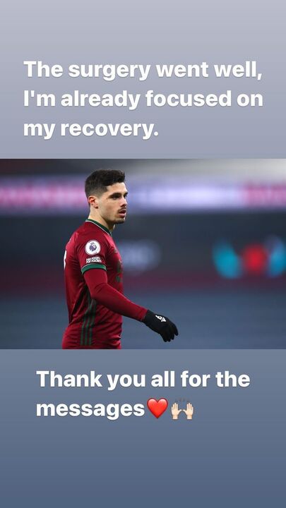 "A operação correu bem. Já estou focado na minha recuperação", escreveu o internacional português, na sua página oficial no Instagram.