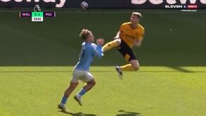 Defesa do Wolverhampton foi imprudente num lance com Grealish e foi expulso ainda na 1.ª parte