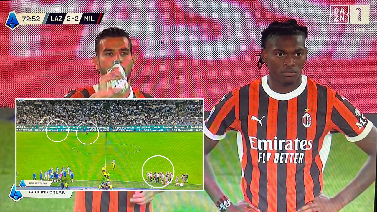 Poi cooling break e i due vanno dall’altra parte rispetto al resto della squadra che si avvicina alla panchina.#LazioMilan pic.twitter.com/5xBLFUp7Bb