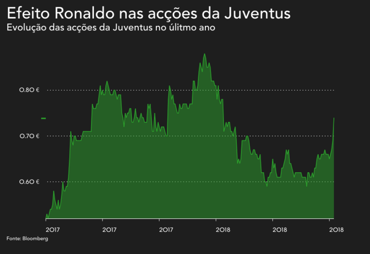 Analistas de mercado citados pela agência Efe relacionam o bom desempenho da Juventus na Bolsa com as notícias que dão como certo que o capitão da selecção portuguesa irá jogar no clube campeão de Itália na próxima época.