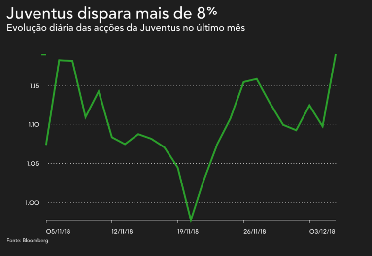 As acções da Juventus dispararam mais de 8% para 1,189 euros.