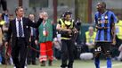 Menno Geelen reage à 'chuva' de pirotecnia lançada por claque no início do jogo com o Groningen