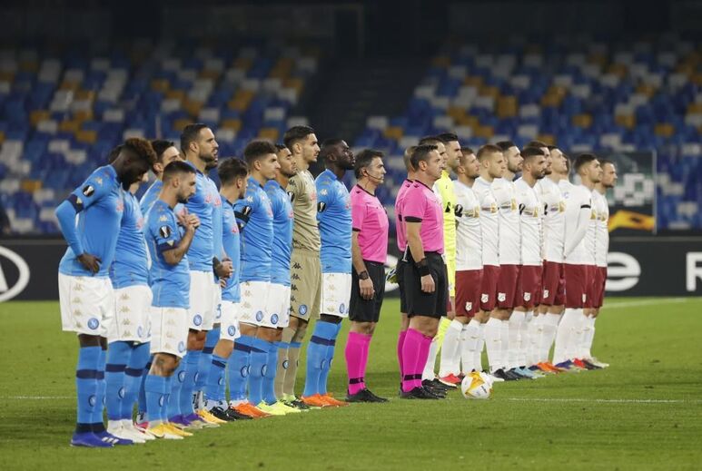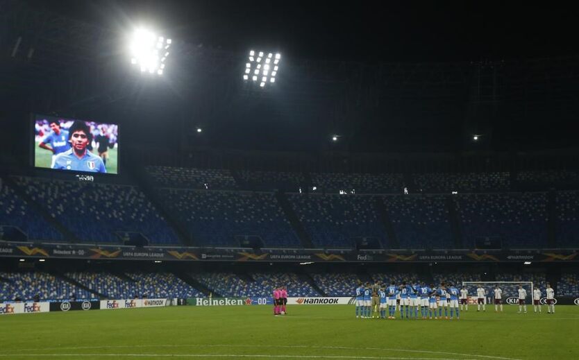 Tanto os jogadores do Nápoles como do Rijeka se juntaram no centro do terreno, respeitando o minuto de silêncio em memória de Maradona, enquanto passavam nos ecrãs do estádio imagens de 'El Pibe'.