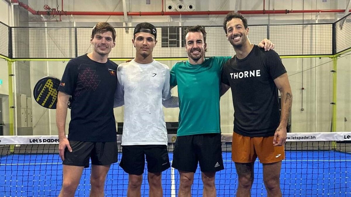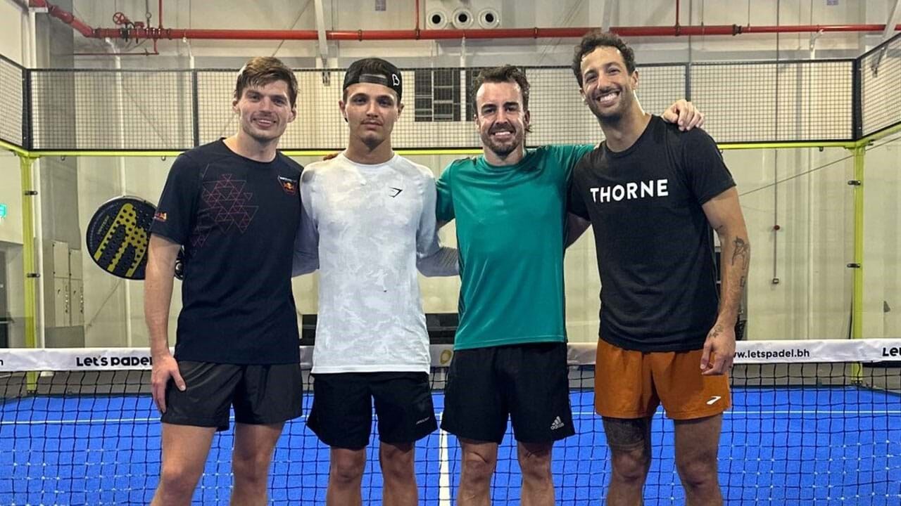 Com o circo da Fórmula 1 instalado no circuito de Shakir, para os testes que antecedem a abertura do Mundial, com o GP Bahrain, mesmo assim há tempo para relaxar. Que o digam Fernando Alonso, Max Verstappen, Lando Norris e Daniel Ricciardo, que decidiram bater umas bolas de padel...