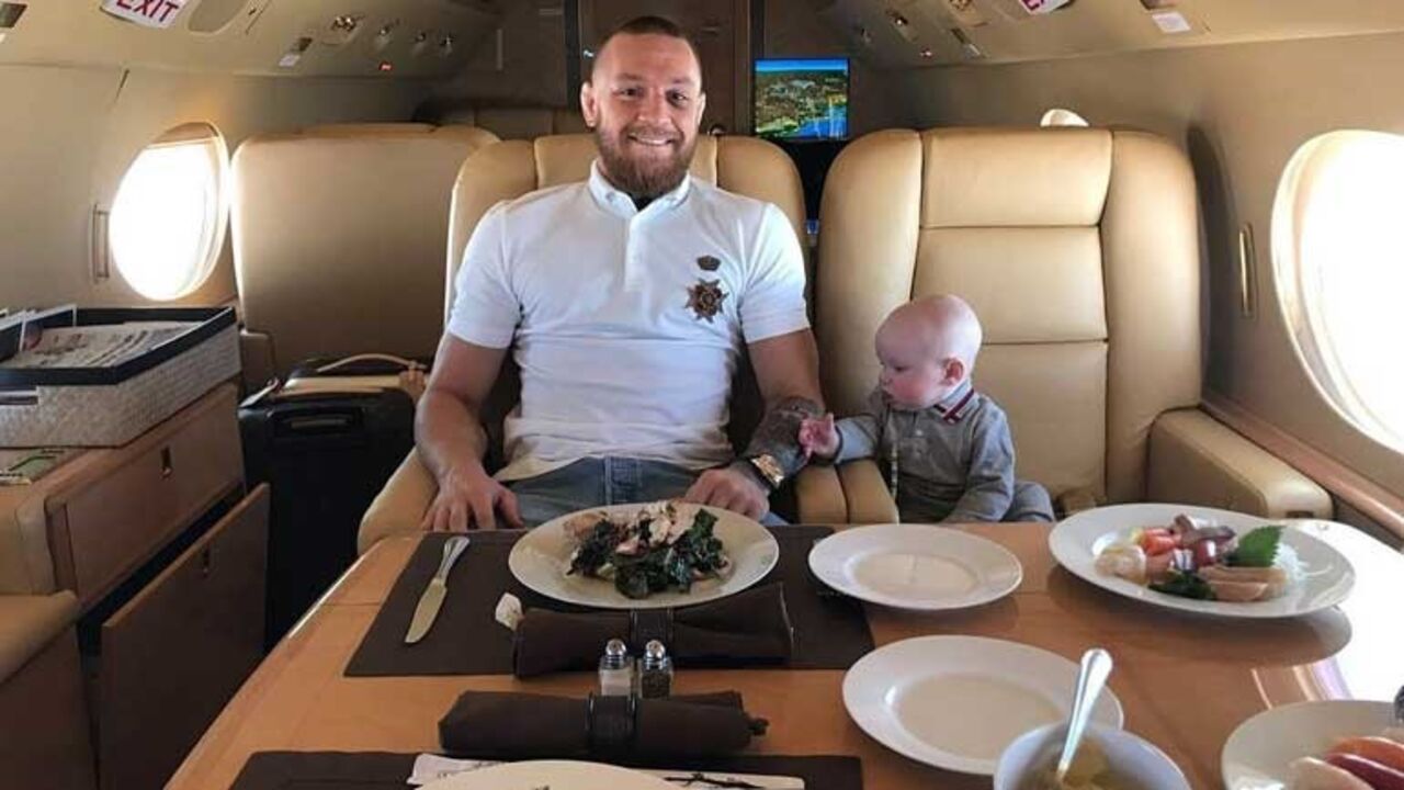 O lutador do UFC Conor McGregor não olha a poupanças. Prova disso é uma das suas últimas publicações nas redes sociais. O irlandês, de 29 anos, exibiu uma fotografia num jato privado, anunciando uma viagem na companhia de alguém muito especial para Ibiza, o seu filho. Ora, ao que parece, ambos alimentaram-se bastante bem no interior da aeronave e o bebé até parece partilhar uma paixão com o progenitor. "Estamos a ter uma refeição no avião e ele [o menino] parece ser também fã de relógios. O meu filho é como o pai: um animal implacável", brincou.