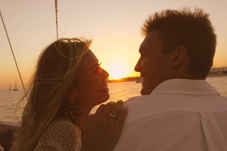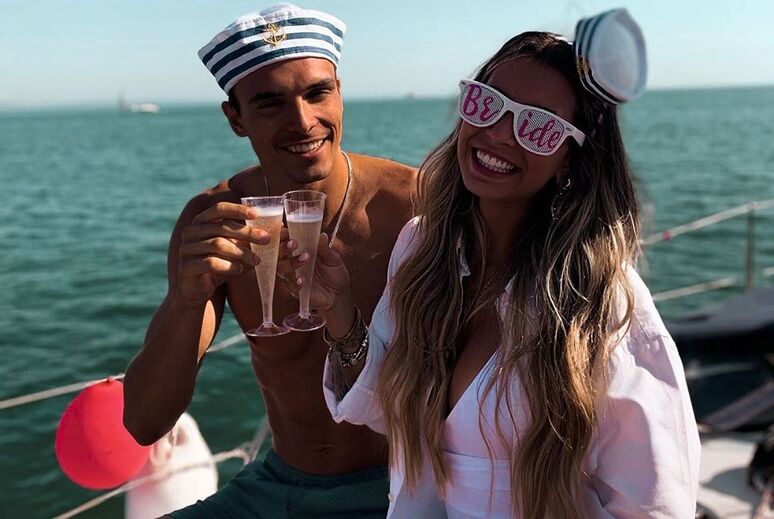 São conhecidas ideias inovadoras para se pedir a namorada em casamento. João Palhinha não fugiu à regra e fez em grande estilo a ansiada declaração a Patrícia Palhares. No casco de um pequeno barco à vela está pintado, em letras garrafais, um elucidativo: “Aceitas casar comigo?”, reforçado por um elegante “A navegar por ti”. À agora noiva agradou-lhe a original proposta feita ontem nas margens de Belém, em Lisboa. “Cem vezes sim!”, respondeu a companheira do médio do Sporting.