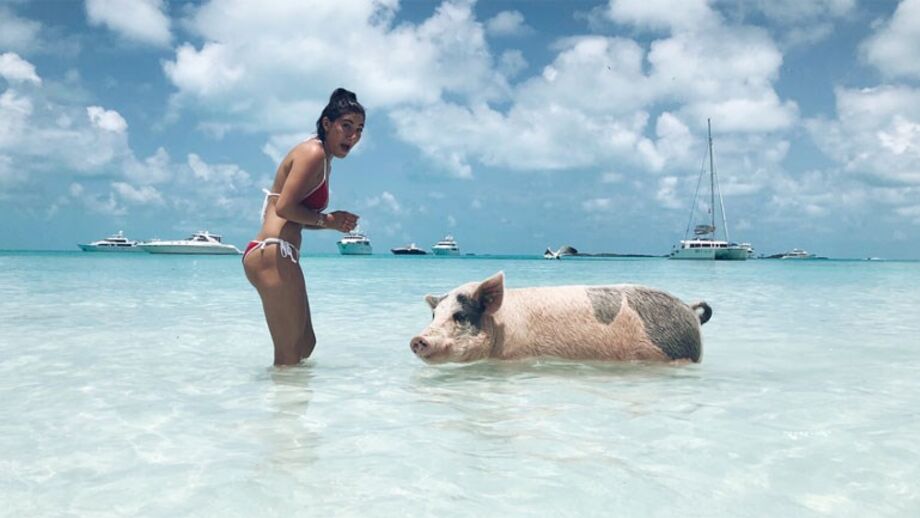 A filha de José Mourinho partilhou na sua conta de Instagram uma imagem muito curiosa das férias em família na ilha de Big Major Cay, nas Bahamas. A jovem, de 21 anos, deixou-se fotografar junto de um dos porcos nadadores, uma verdadeira atração turística daquelas paragens. "Quase que me mordeu o dedo", escreveu Matilde como legenda de uma das imagens. Já numa outra fotografia, pode ver-se a filha e a mulher do treinador do clube inglês Manchester United. Matilde ainda não partilhou nenhuma imagem ao lado de José Mourinho.