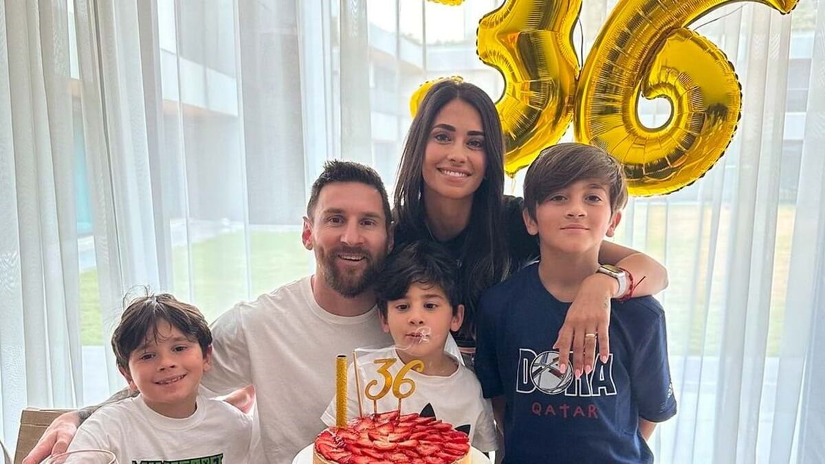 O jogador argentino Lionel Messi fez anos (36), neste fim de semana, e a mulher assinalou a data nas redes sociais, com a publicação de uma foto de família, feliz e sorridente, reunida em volta de um bolo coberto de morangos. "Feliz aniversário, meu amor. Amamos-te até ao infinito", escreveu Antonela Roccuzzo na sua página do Instagram. Messi, que saiu recentemente do PSG e está de malas aviadas para os Estados Unidos, onde jogará a favor do Inter Miami, sempre teve na família o seu principal suporte. O casal é pai de três filhos: Thiago (de 10 anos), Mateo (7) e Ciro (5).
