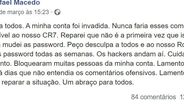 Depois da polémica gerada, o político veio a público pedir desculpa, e garantiu ter sido alvo de piratas informáticos. "Peço desculpa a todos e ao nosso Ronaldo. Os hackers andam aí."