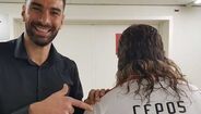 Rui Patrício protagonizou ontem um divertido momento com o humorista Eduardo Madeira. O artista assumiu uma personagem de um futebolista da equipa fictícia ‘Cepos Futebol Clube’ e o guarda-redes do Sporting aproveitou a situação para tirar uma fotografia com o falso craque e deixar uma dica a um colega de equipa.