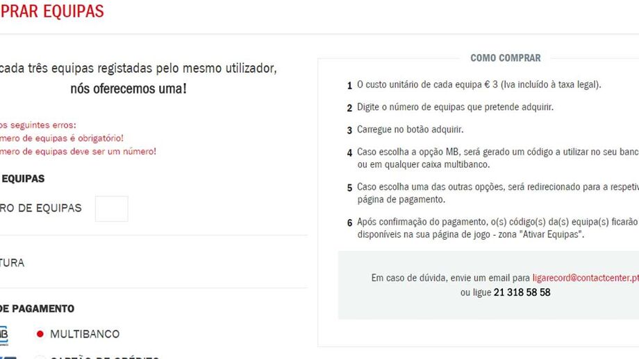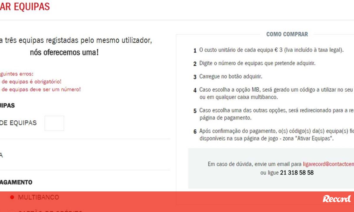 As inscrições para participação no concurso continuam a decorrer no site. Para esse efeito pode ser utilizado o código de ativação incluído no Guia Record, à venda nas bancas, ou então feita a compra online, que também já está disponível. Não há limite por participante. O registo de três equipas dá direito a mais uma