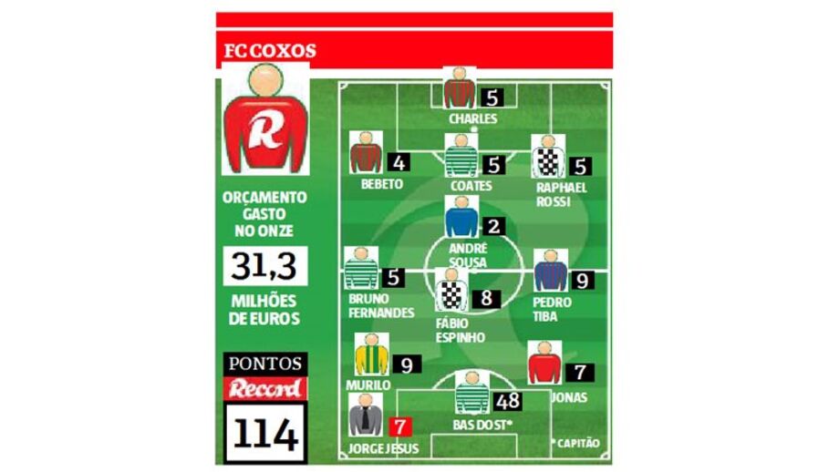 O prémio semanal da Liga Record segue para Lisboa. Afonso Reis, adepto do Sporting, cumpre a temporada de estreia no nosso concurso e somou 114 pontos nesta jornada com a equipa FC Coxos, arrebatando assim um vale da Rádio Popular no valor de 250 euros. Fundamental para o triunfo revelou-se a aposta de Bas Dost para capitão de equipa. É que o holandês assinou um hat trick diante do Aves, foi o jogador da semana e rendeu 48 pontos a Afonso Reis. Coates e Bruno Fernandes foram os outros leões escolhidos para o onze, onde também constam Pedro Tiba, Fábio Espinho e Murilo – todos autores de golos nesta ronda. Tal como Jonas, craque do rival Benfica.