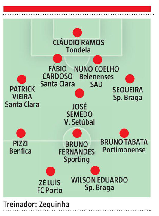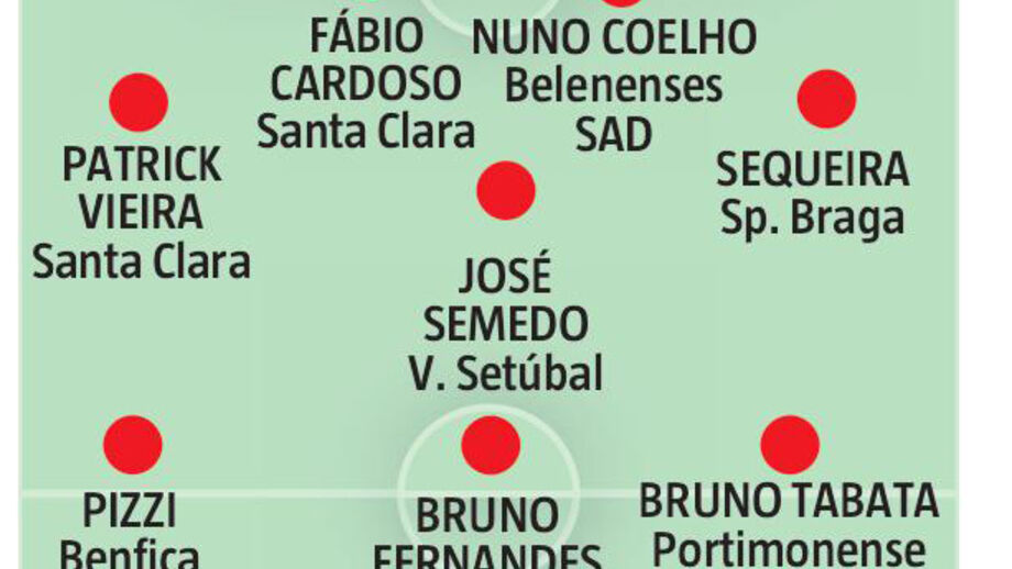 Na defesa, Zequinha colocou dois antigos colegas, o central Nuno Coelho, do Belenenses SAD, e Sequeira, do Sp. Braga. Para completar o quarteto, o atacante dos sadinos optou por Patrick Vieira e Fábio Cardoso, ambos do Santa Clara. "São jogadores regulares com características ofensivas e, no caso do Fábio Cardoso, finaliza bem."