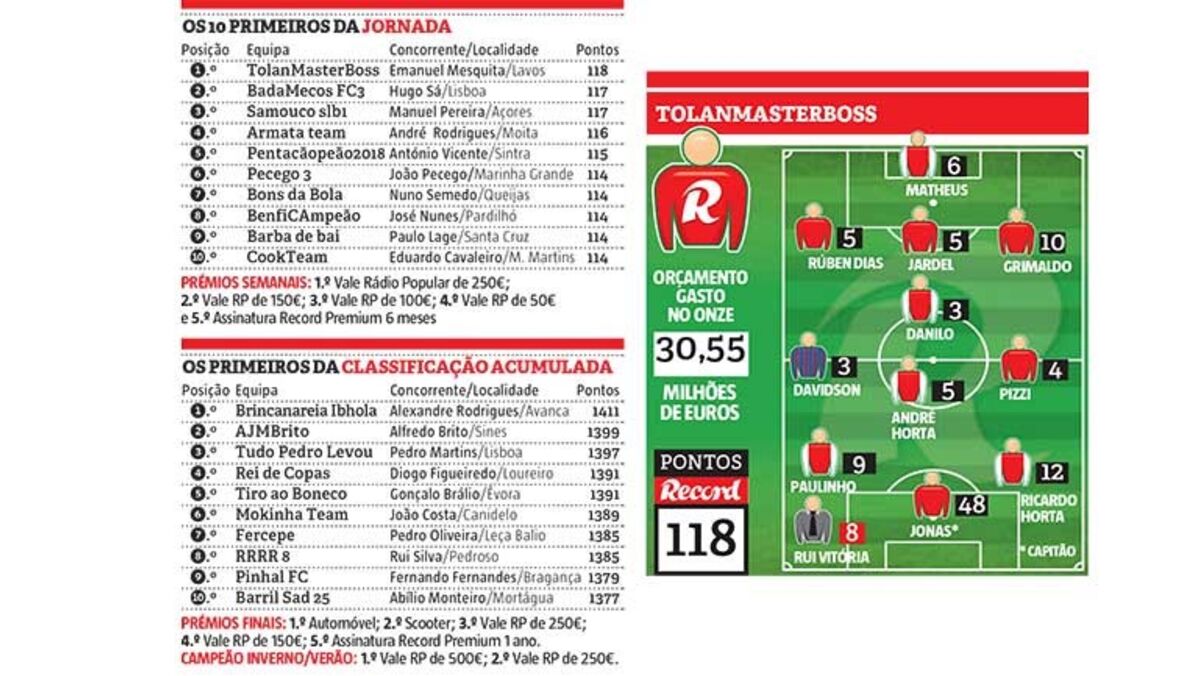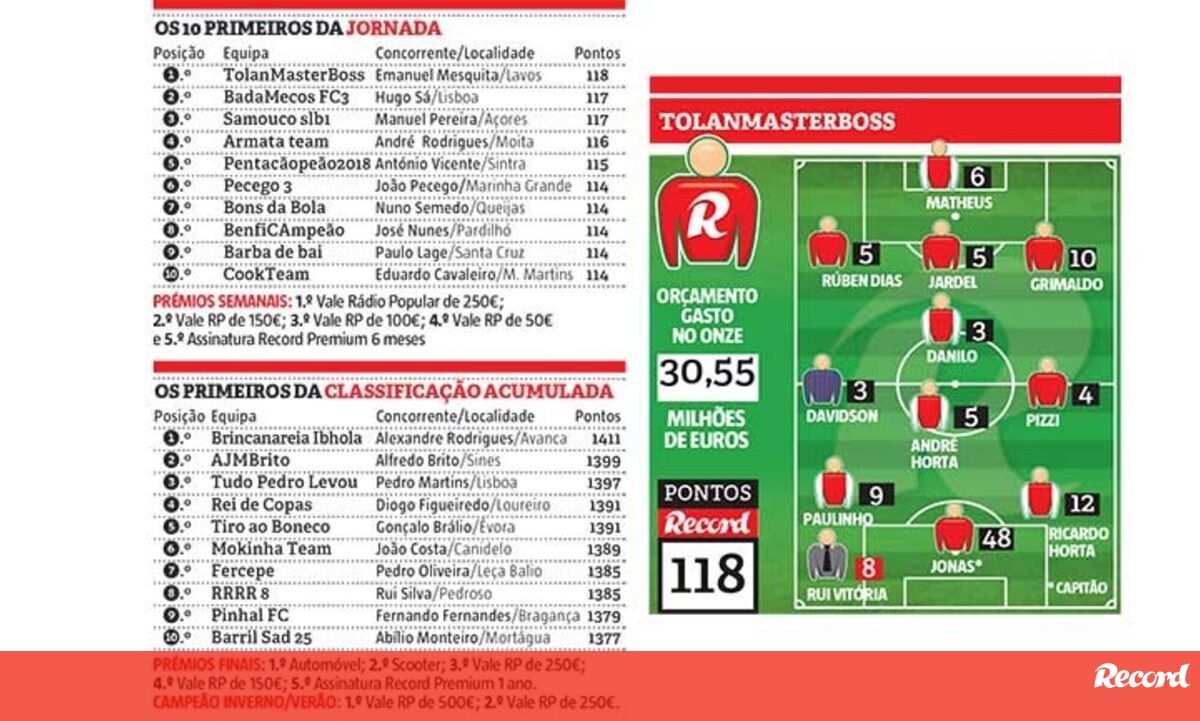 Numa jornada na qual o benfiquista Jonas valeu 48 pontos