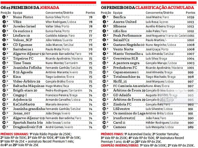 Com um empate de três concorrentes com 78 pontos, foi necessário recorrer ao primeiro fator de desempate e a vitória acabou por sorrir a Eurico Silva. O treinador de bancada de Guifões, Matosinhos, gastou 37,85 milhões a formar o plantel, enquanto Vítor Rodrigues usou 39,4 e Valter Silva gastou o máximo permitido. Eurico Silva vai então receber um vale de 250 da RP, graças à pontuação da equipa Nuno Pinto1.