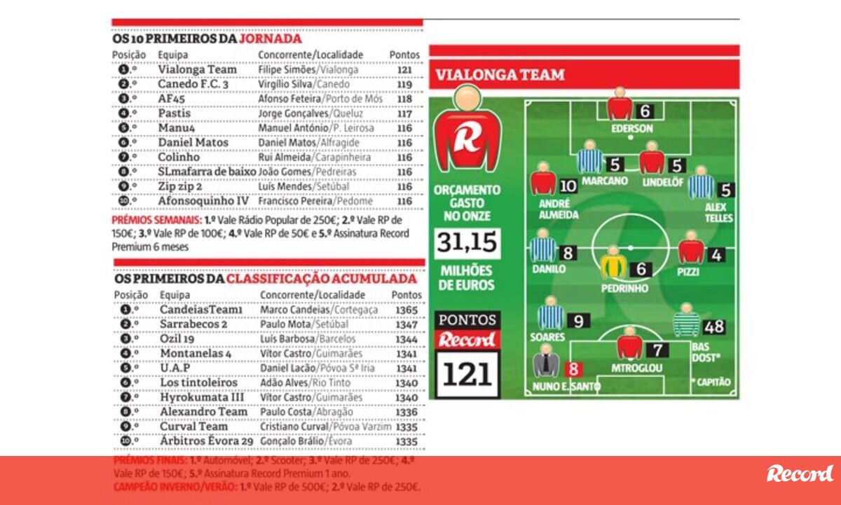 Filipe Mendes, concorrente de Vialonga, é o vencedor do Prémio Semanal da 22ª ronda da Liga Record, correspondente à 25ª jornada da Liga NOS.