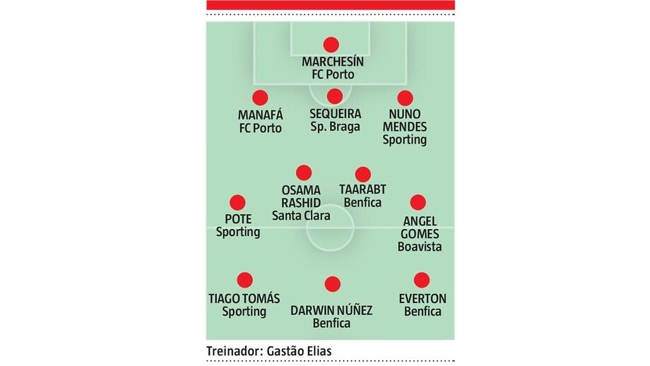 Mas comecemos pela baliza, onde o lourinhanense, que tem o 57º lugar do ranking ATP como melhor classificação da carreira, apostou em Marchesín. “Foi uma peça fundamental no FC Porto na época passada. É um jogador que passa muita confiança e como a defesa do FC Porto é boa vai sofrer poucos golos”, destaca o tenista, antes de falar da defesa: “Escolhi três jogadores bem agressivos. Nuno Mendes e Sequeira são fortes nas bolas paradas e Manafá vai ajudar muito lá na frente. Apesar de ser defesa, joga muito como extremo e aparece muitas vezes na frente.”