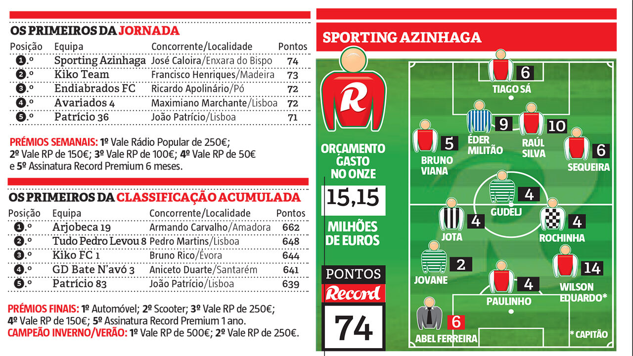 Com seis jogadores do Sp. Braga no onze, o treinador de bancada contou ainda com a ajuda dos nove pontos do portista Éder Militão.