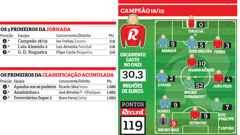 Adepto do Sporting, Ivo Freitas formou um onze com quatro portistas, três benfiquistas e apenas dois leões. No entanto, o facto de ter colocado a braçadeira de capitão em Bruno Fernandes dobrou-lhe a pontuação do médio sportinguista, que valeu 52 pontos.