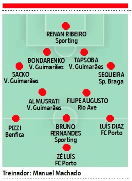 Sem embargo, Manuel Machado faz uma apreciação mais individual do meio-campo para a frente. "Temos um trinco sólido. Dois médios com capacidade criativa, o Filipe Augusto e o Bruno Fernandes, que dão profundidade, e uma frente de ataque poderosa. Os jogadores dos três grandes fariam, como é óbvio, a diferença, sobretudo os quatro do meio-campo para a frente", atesta. Contas feitas, o técnico escolheu quatro jogadores do Vitória, dois do Sporting, dois do FC Porto, um do Benfica, um do Sp. Braga e um do Rio Ave.