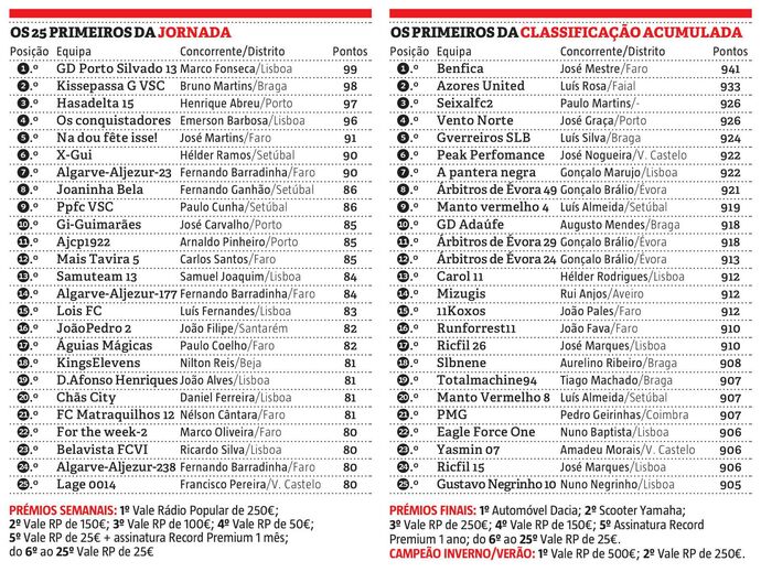 Marco Fonseca é o vencedor do prémio semanal da 16ª ronda da Liga Record 2019/20. O treinador de bancada de Lisboa entrou em campo só com jogadores do Vitória de Guimarães e somou 99 pontos, uma das melhores pontuações da época. Marco Fonseca e outros três concorrentes que terminaram no ‘Top 10’ da jornada apostaram tudo no branco do Vitória, alinhando só com jogadores dos vimaranenses. A vantagem do vencedor resultou de ter colocado Bruno Duarte como capitão, duplicando o total do avançado para 20 pontos. Graças a esta aposta, o concorrente de Lisboa vai receber um vale de 250 euros do Rádio Popular, mais 100 do que o 2º da tabela.