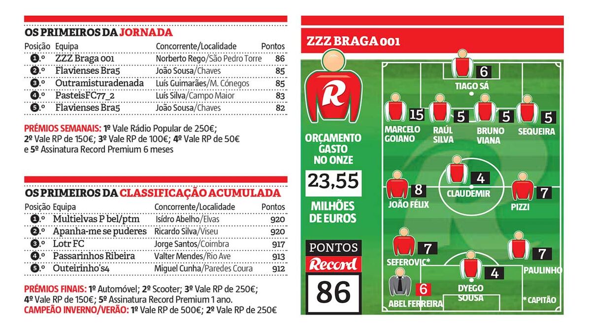 Numa jornada na qual Benfica e Sp. Braga foram os grandes beneficiados, graças aos pontos perdidos por FC Porto e Sporting, Norberto Rego apostou numa aliança encarnada e ganhou o prémio semanal. Curiosamente, com apenas dois jogadores diferentes do 2º classificado.