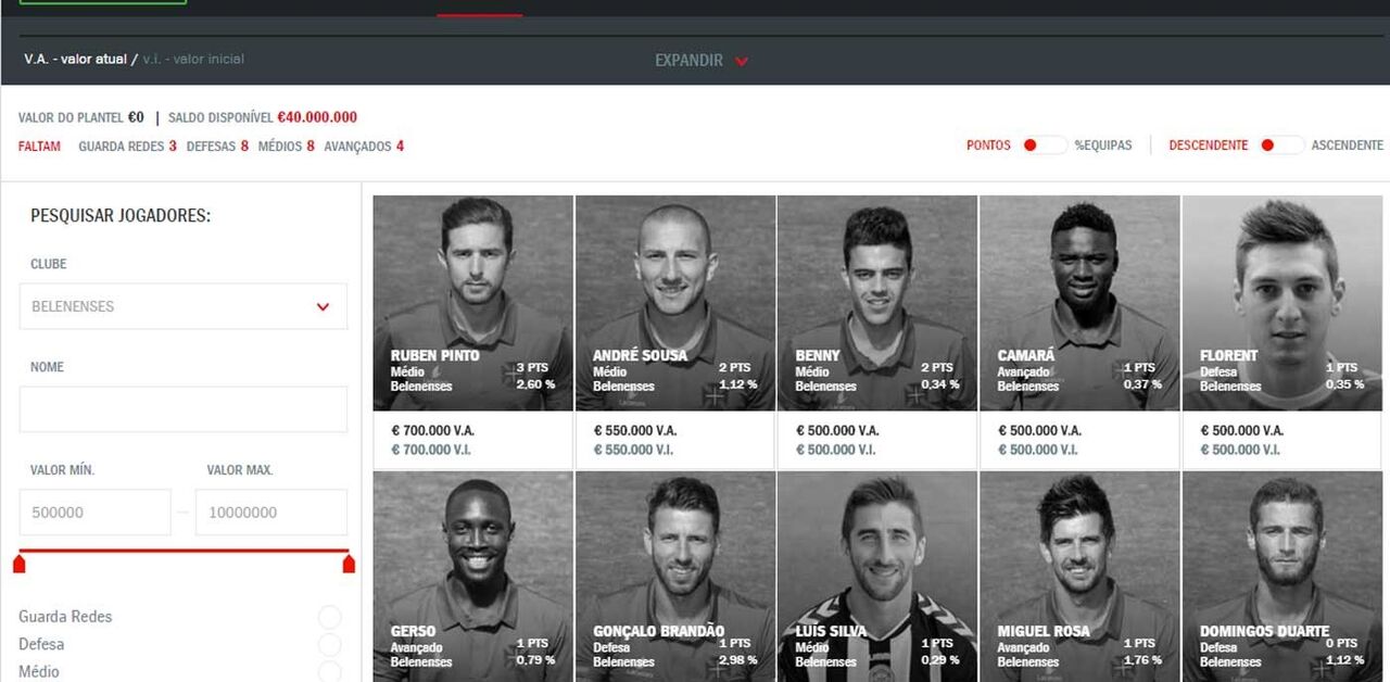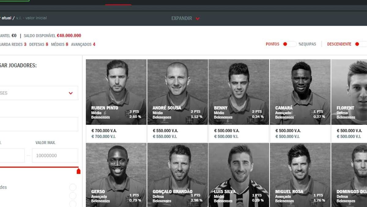 A Liga Record está ainda na sua fase experimental, numa altura em que os plantéis das várias equipas da Liga NOS sofrem alterações a um ritmo quase diário. Desta forma, a lista de jogadores à sua disposição em www.liga.record.xl.pt para formar uma equipa competitiva também vai mudando semanalmente, até ao estabelecimento do lote definitivo.