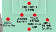 "Vou ter de ter atenção para não exceder o orçamento. Na baliza entra o Diogo Costa. Na defesa o Nuno Mendes e os restantes têm de ser mais baratos, para apostar forte no meio-campo. Vai o Sacko na direita e e o Tomás Ribeiro no centro", começou por escolher.