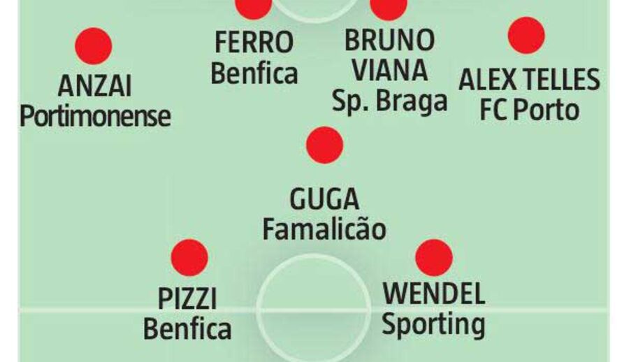 Por outro lado, Pizzi foi um dos primeiros nomes a serem apontados logo pelo professor, ele que completa o meio-campo com Wendel e Guga, potencial revelação no Famalicão.