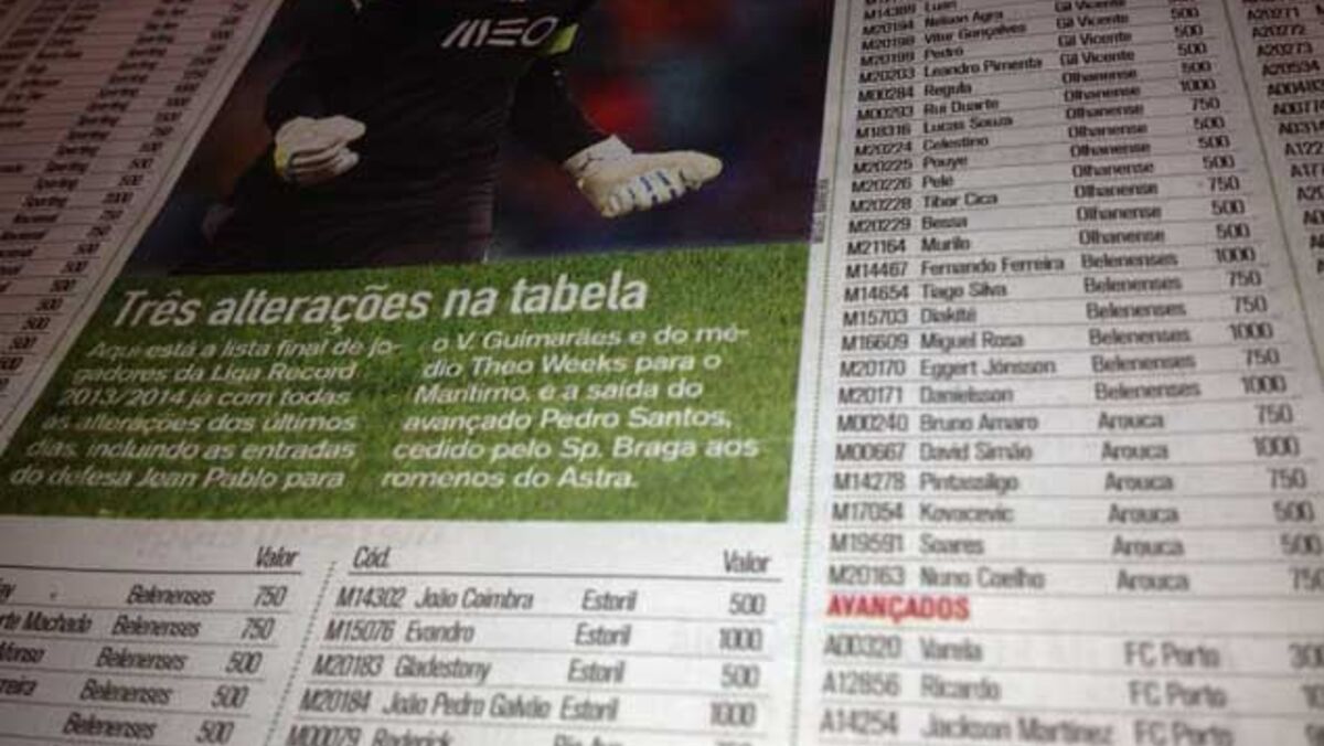 Ter um guarda-redes de confiança é meio caminho andado para ter sucesso na Liga Record 2013/14 que já tem milhares de equipas inscritas. O mais caro é Rui Patrício.