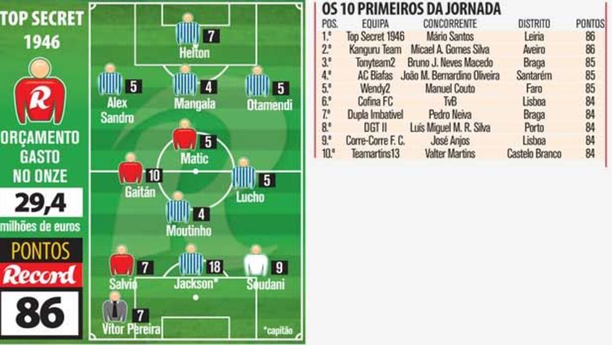 Mário Santos, da Foz do Arelho, venceu o prémio semanal da 26.ª jornada. O concorrente fez 86 pontos com a Top Secret 1946 e venceu no desempate pois tem o orçamento mais baixo do que o 2.º classificado.