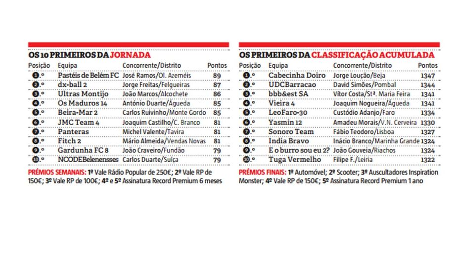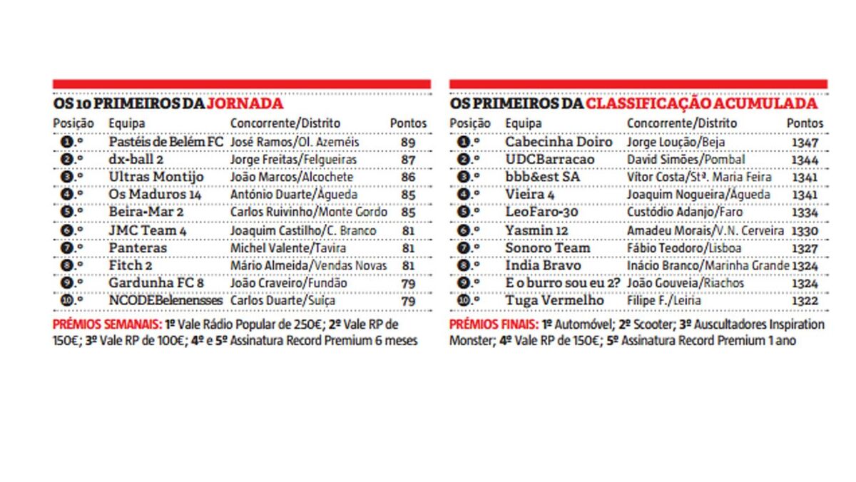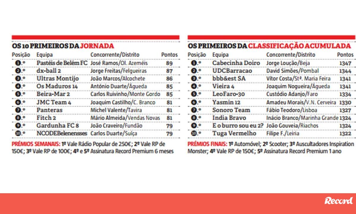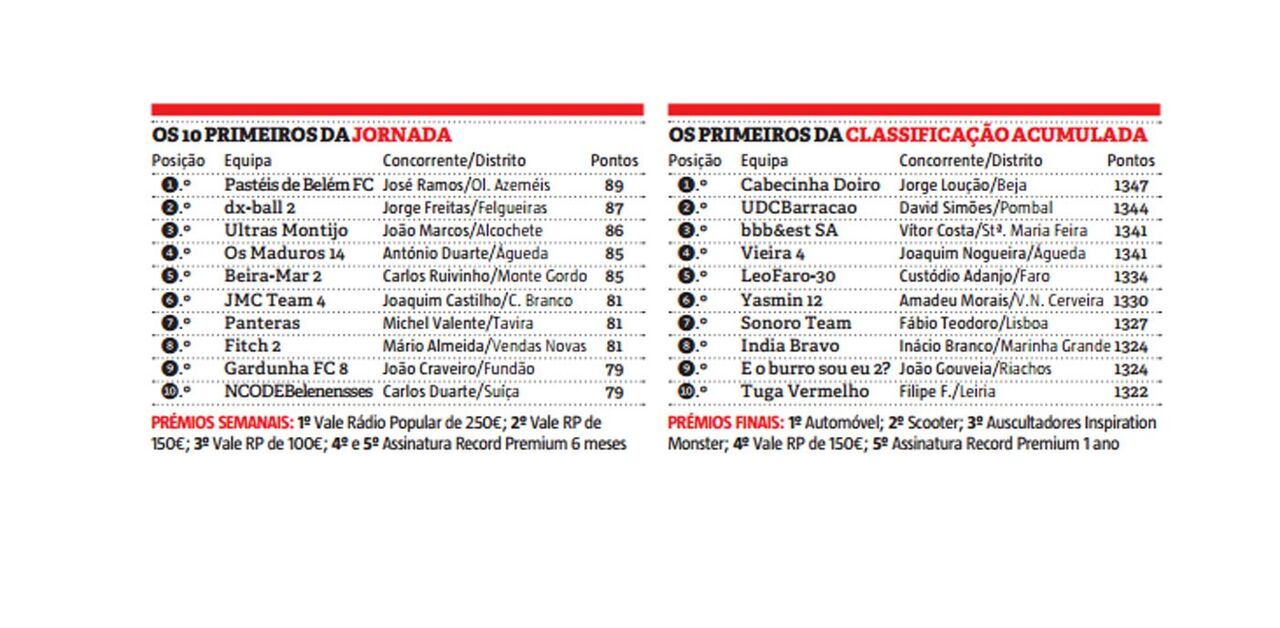 José Manuel Ramos é o vencedor semanal da 23ª ronda da Liga Record, ao somar 89 pontos (mais dois que o 2º classificado) com a equipa Pastéis de Belém FC.