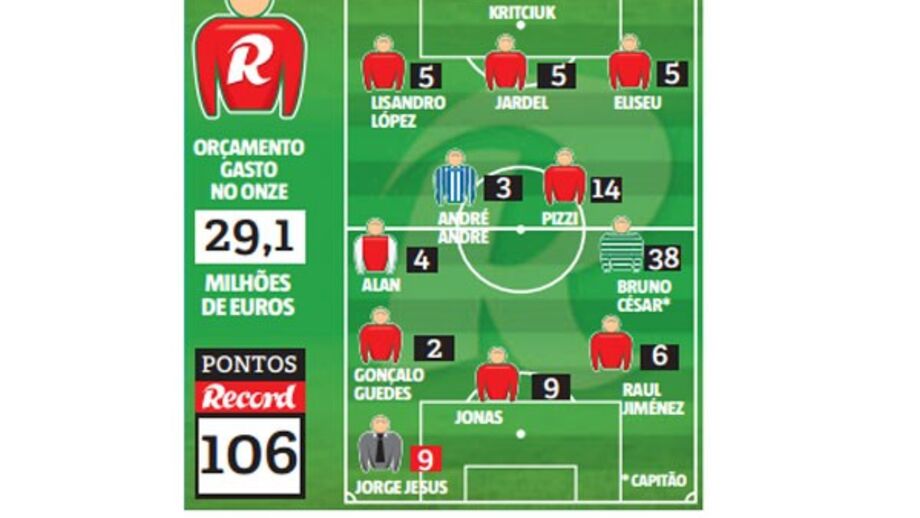 Adepto do Sporting, João Rodrigues alinhou com um onze maioritariamente... benfiquista, tirando partido da goleada da águia ao Marítimo (6-0). E palpites certeiros nos leões Bruno César (capitão) e Jorge Jesus (treinador), enquanto o 2º ‘Juve SLB 13’ optou por Jonas e Rui Vitória.