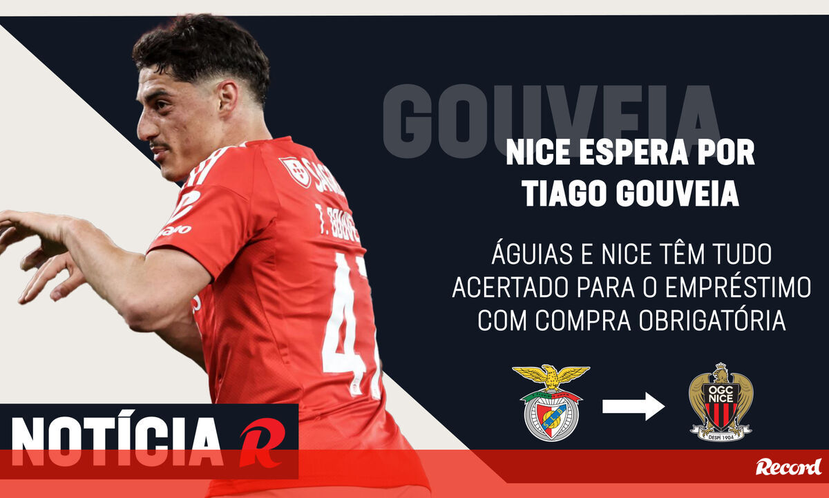 O adeus de Tiago Gouveia ao Benfica pode estar muito próximo. Segundo Record apurou, águias e Nice têm tudo acertado para a transferência do extremo, que acontecerá por meio de um empréstimo com compra obrigatória de oito milhões de euros. Mas, para já, tudo congelado. Nem o português, nem nenhum outro futebolista, sai até quinta-feira, visto que a partida na véspera, da Liga dos Campeões, terá influência nas decisões do plantel. Leia mais aqui.