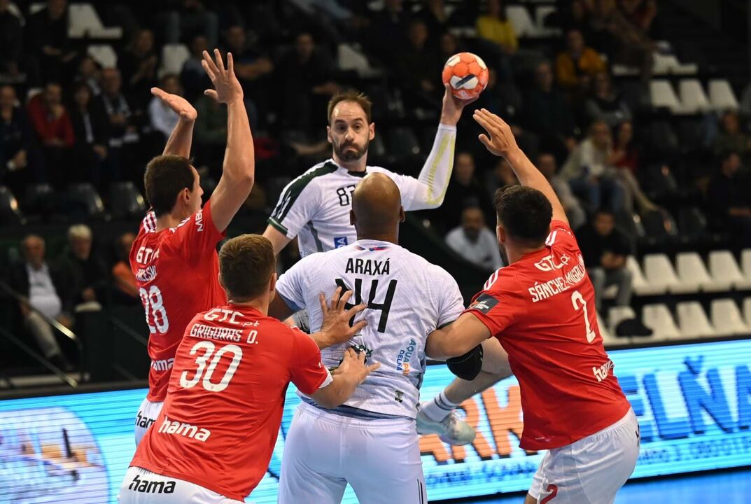 Com uma primeira parte irrepreensível ao nível defensivo, os encarnados chegaram ao intervalo na frente (9-6), secando o ataque do campeão eslovaco, com destaque para o guarda-redes Kristóf Palasics (8 defesas e 40% de eficácia).