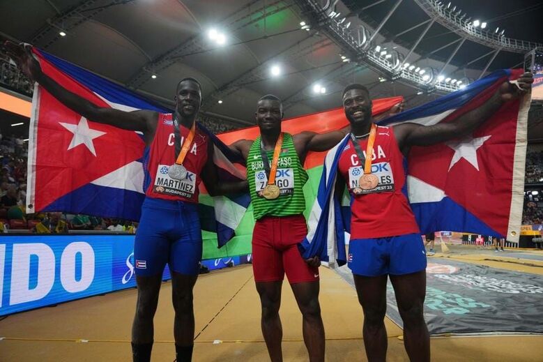Numa final sem a presença do campeão em título, o português Pedro Pichardo - e em que Tiago Luís Pereira foi 11.º -, o ouro mundial do triplo salto em Budapeste'2023 foi para o Burkina Faso, com Hugues-Fabrice Zango a ser o mais forte numa decisão na qual se superiorizou ao duo cubano composto por Lazaro Martinez e Cristian Nápoles.