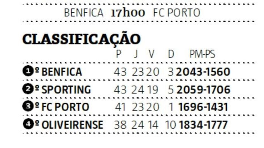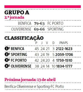 Depois da derrota do Sporting na véspera, o Benfica pode disparar na liderança do Grupo A da 2.ª fase da Liga Betclic, que define as posições finais para o playoff do título. Se ganhar na Luz, o FC Porto pode apanhar os leões no segundo posto, antes da visita ao João Rocha na quarta-feira.