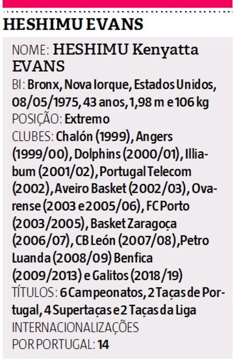Heshimu Evans, o único jogador a vencer o campeonato português por quatro equipas diferentes (um na Portugal Telecom, um no FC Porto, um na Ovarense e três no Benfica), retirou-se em 2013, depois de ter sido tricampeão pelas águias, mas agora... decidiu voltar. O internacional português, nascido em Nova Iorque, vai jogar no Galitos e explica a razão pela qual decidiu regressar aos 43 anos!