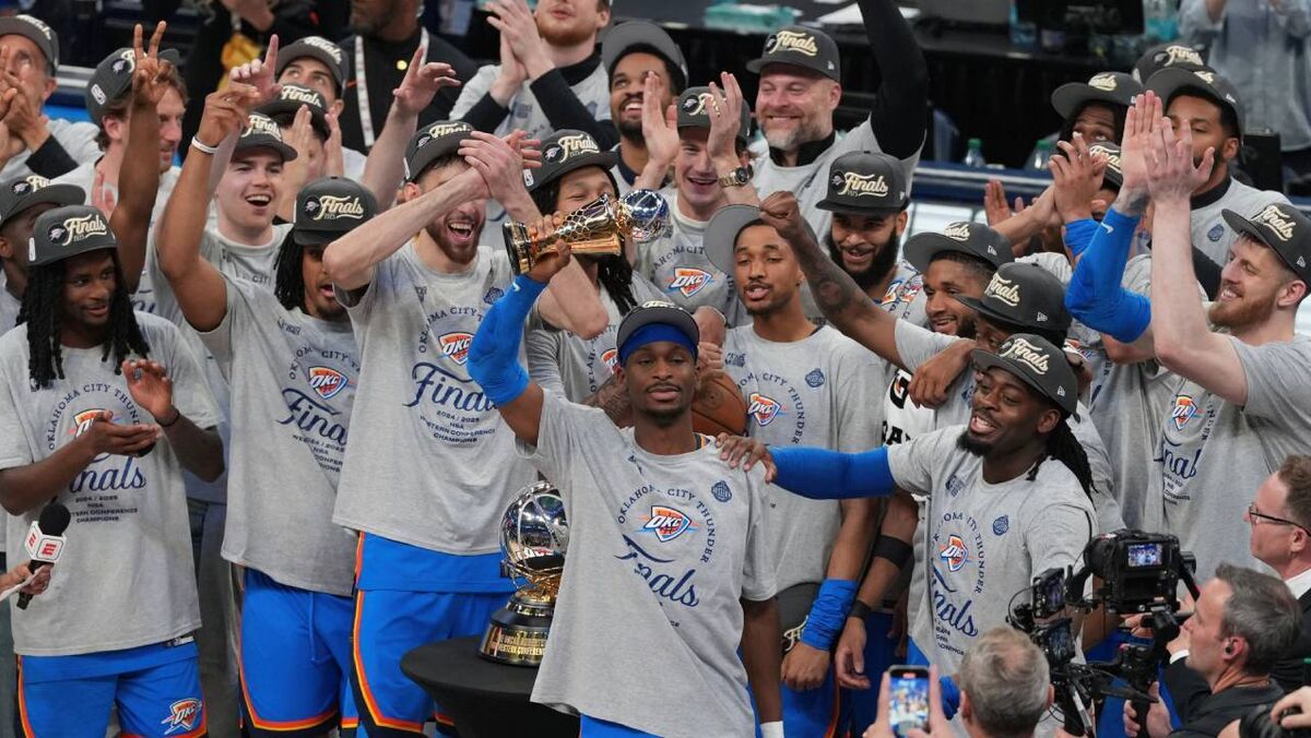 Shai Gilgeous-Alexander, autor de 34 pontos, 7 ressaltos e 8 assistências, liderou os Thunder e recebeu o troféu Earvin Magic Johnson, referente ao MVP da final do Oeste.