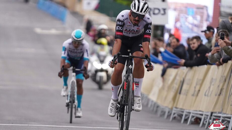 O português da UAE Emirates, de 21 anos, atacou a mais de 40 quilómetros da meta, na ascensão ao Coll de Sóller, de segunda categoria, e andou na frente de corrida durante mais de três dezenas de quilómetros, optando por aguardar pelos perseguidores.