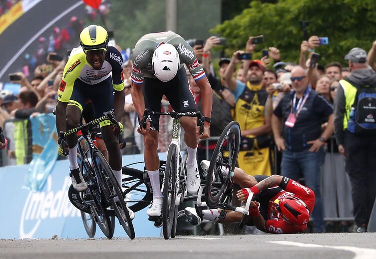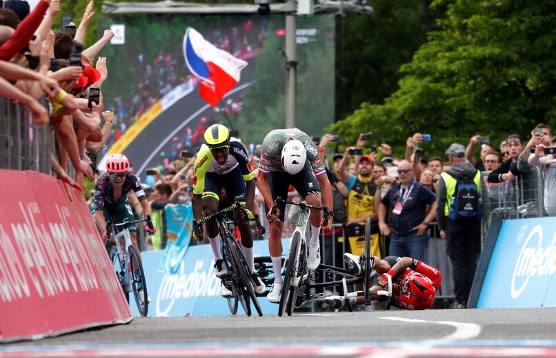 O sprinter era tido como um dos candidatos a discutir a primeira etapa, entre Budapeste e Visegrád, na Hungria, e, nos últimos metros, lá estava, quando embateu na roda do eritreu Biniam Girmay (Intermarché-Wanty-Gobert Matériaux), que acabou no segundo lugar.