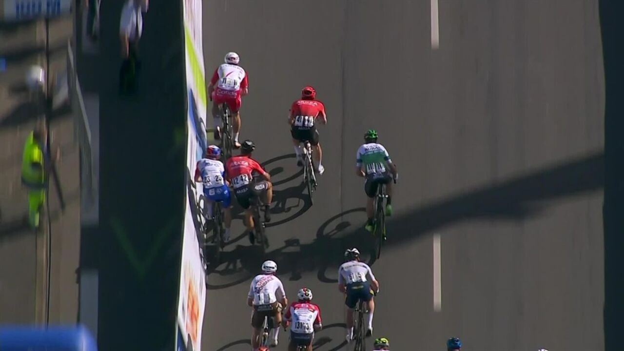 Nacer Bouhanni, que terminou a corrida em terceiro, foi desclassificado pouco depois pelo colégio de comissários, após a análise das imagens televisivas, onde se vê o francês a 'fechar' a trajetória a Jake Stewart, empurrando, com o ombro, o britânico contra as barreiras.