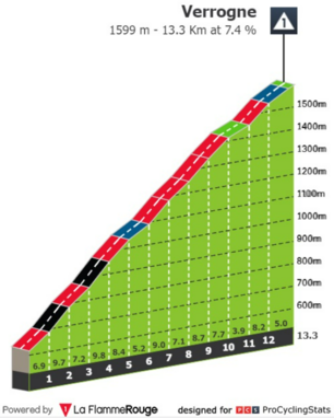 Estamos a meio da subida a Verrogne e Rui Costa está a 26 segundos dos três primeiros. Será que o corredor português vai tentar a vitória na etapa? Lembramos que esta não é a última montanha do dia, ainda falta a subida a Cogne, que coincide com a meta...