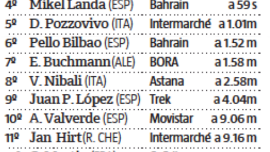 6.º Pello Bilbao, a 1.54 minutos