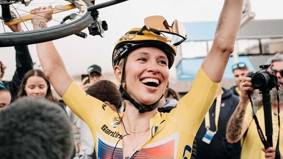 Demi Vollering, campeã de 2023, ficou a quatro segundos da ciclista polaca